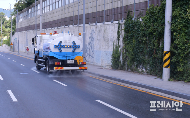 폭염 이후 도심 식히기에 분주했던 16톤급 살수차는 2대를 추가 임차해 총 3대를 가동한다. 살수차 운영은 도심 열섬현상을 완화하고 아스팔트 변형 등을 막는 효과가 있다.