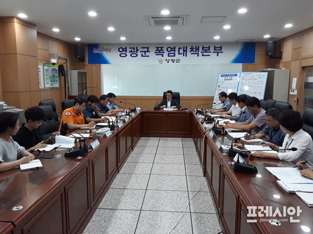 강영구 부군수는 점검 회의를 주재한 자리에서 "장기화되고 있는 폭염으로 인한 피해를 최소화하고 이번 주 예정된 제9회 영광 천일염·젓갈 갯벌축제 시 인명피해가 발생하지 않도록 행정은 물론 유관기관에서도 적극 협조해 달라"고 주문하고 특히, 상황 종료 시까지 긴장의 끈을 놓지 말고 취약계층 수시 방문 등 폭염에 취약한 분야에 총력을 기울여 줄 것을 당부했다.