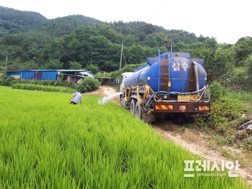 입암마을 내 하천이 불볕더위로 취수할 수 없어 인근 월흥마을의 협조로 월흥 저수지에서 취수, 피해현장에 농업용수 300톤을 긴급 지원했다.
