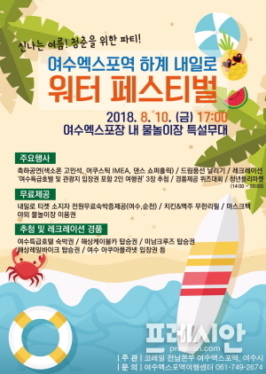 페스티벌 명칭은 ‘2018 하계 내일로 워터 페스티벌’로 10일 오후 5시부터 여수세계박람회장 내 팡팡 물놀이장 특설무대에서 진행된다.
