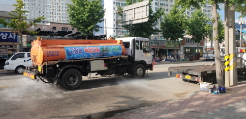 군은 현재 고창읍뿐만 아니라 면 소재지 등을 살수하기 위해 1억2000만원의 예비비를 투입하고, 9000여만원의 예산으로 그늘막 5개소 추가 설치를 비롯해 버스터미널 등 다중이용시설에 얼음을 비치했다.