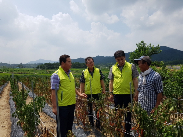 강태호 NH농협생명 부사장이 10일 임실읍 장재리의 폭염피해 농가를 방문해 농업인을 위로하고 피해 현황을 살폈다.