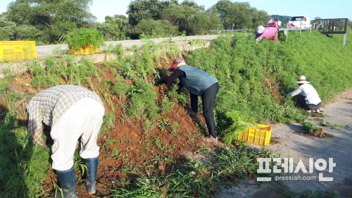 극심한 가뭄과 폭염으로 이른 아침과 늦은 저녁 트럭과 트랙터를 동원하여 동판저수지 코스모스길 조성구간 2㎞에 물주기 작업을 실시했다.