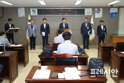 백두현 고성군수는 16일 군청 중회의실에서 언론브리핑을 가졌다.