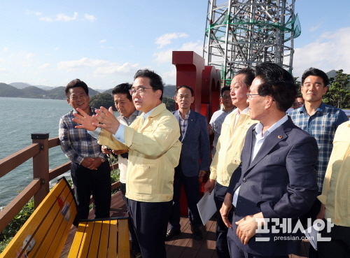 허 시장은 주요시책 사업으로 추진 중인 짚트랙 99타워, 명동 거점형 마리나항만, 우도 해변 친수공간 조성 등의 현장을 차례로 살펴보고 추진상황을 보고 받았다.