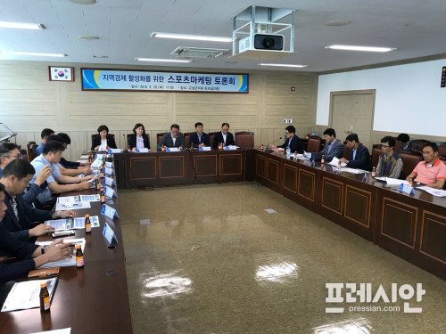 경남 고성군은 스포츠마케팅을 통해 침체한 지역경제 위기를 극복하고자 군의회에서 스포츠마케팅 토론회를 가졌다.