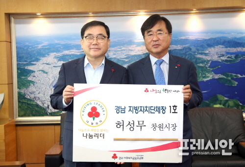 허성무 창원시장, 나눔리더 1호 인증패 전달식 가져