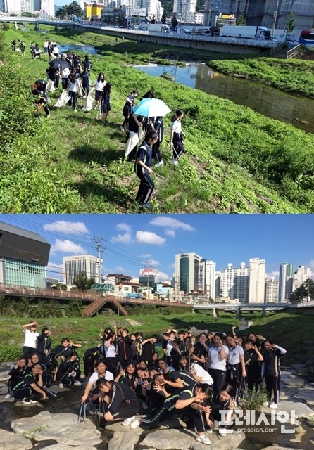 [포토뉴스] 마산무학여고, 삼호천 환경정비 봉사활동 ‘구슬땀’