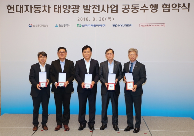 한국수력원자력(이하 한수원)이 지난 30일 울산 롯데호텔에서 울산광역시, 현대자동차, 현대커머셜과 현대차그룹 내 태양광발전 공동개발 양해각서(MOU)를 체결했다.