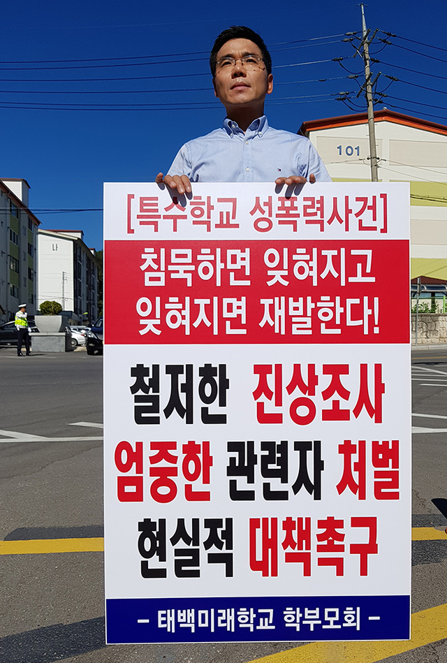 ▲태백특수학교 학부모의 1인시위. ⓒ프레시안