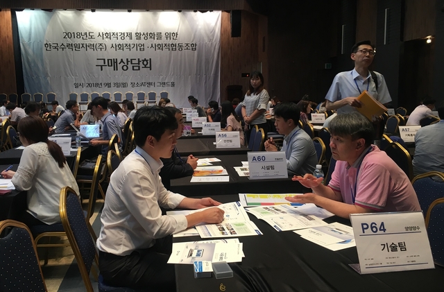 한국사회적기업진흥원(이하 진흥원)과 함께 마련한 이번 행사에서는 사회적경제 기업 120개사를 초청해 한수원 구매담당자와 1:1 매칭 상담회를 진행했다.