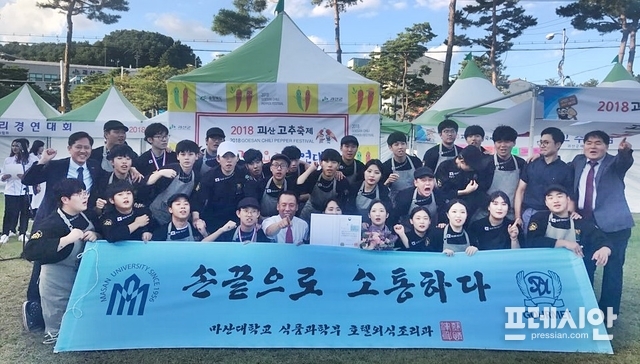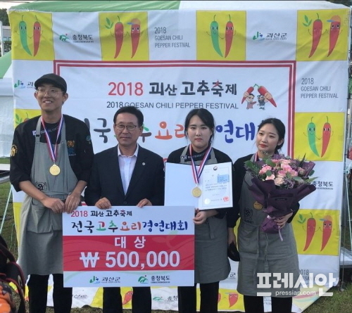마산대학교는 식품과학부 학생들이 지난 8월 30일부터 9월 2일까지 충북 괴산군에서 개최된 ‘2018 괴산고추축제’ 전국고추요리경연대회에서 대상인 문화체육관광부장관상을 수상했다고 3일 밝혔다.