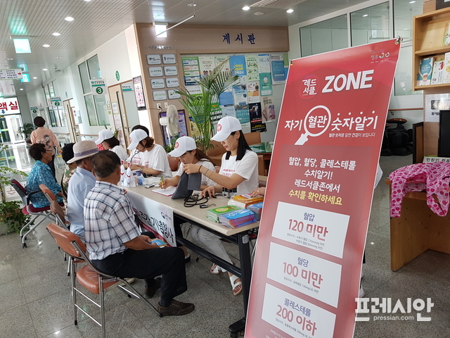 '레드서클존(Red Circle Zone)'이란 혈압, 혈당 수치 측정 및 심뇌혈관질환예방관리 방법 등을 안내 받을 수 있는 건강부스이다. 이곳에서는 심뇌혈관질환예방에 대한 주민 인식개선과 생활실천을 통한 행동변화 유도한다.