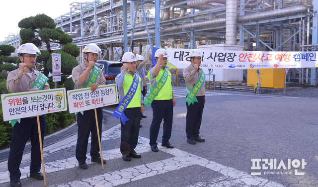 5일 오전에는 롯데케미칼(주) 제1공장 서문 입구에서 캠페인이 있었다. 이날 캠페인에는 롯데케미칼㈜과 한국가스안전공사 임직원, 시 공무원 등 30여 명이 동참했다.