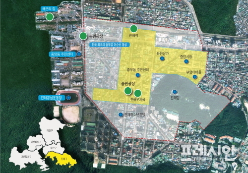 진해구 충무동 ‧ 중앙동 ‧ 여좌동 일원의 23만㎡는 공공‧행정 기능의 이전으로 원도심의 쇠퇴가 심각한 지역이다.
