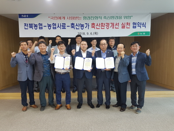 전북농협은 6일 지역본부에서 농협사료 전북지사· 관내 축산농가와 함께 축산냄새 제로화를 위해 '축산환경개선 실천 협약식'을 개최했다.