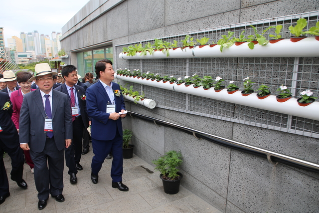 주제관에서는 대구시의 도시농업정책을 상세하게 설명하고, 건물의 벽면을 다양한 식물로 녹화할 수 있는 모델이 전시했다.