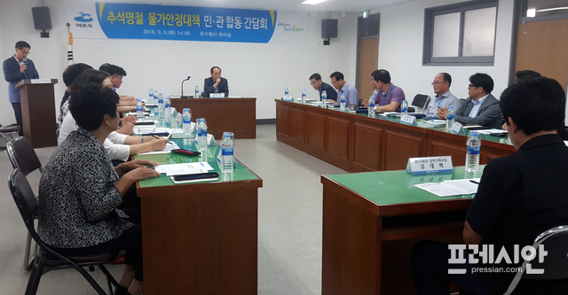 여수시는 지난 6일 문수청사 회의실에서 추석명절 물가안정대책 민관합동 간담회를 열어 민간차원의 자발적 동참을 요청하는 등 물가안정에 행정력을 집중하고 있다고 7일 밝혔다.
