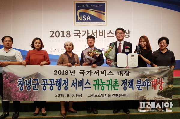 창녕군은 8년 연속 유일하게 경남도에서는 인구가 증가한 지역으로서 공공부문 귀농귀촌 정책 분야 국가서비스 대상을 받는 영광을 얻게 되었다.