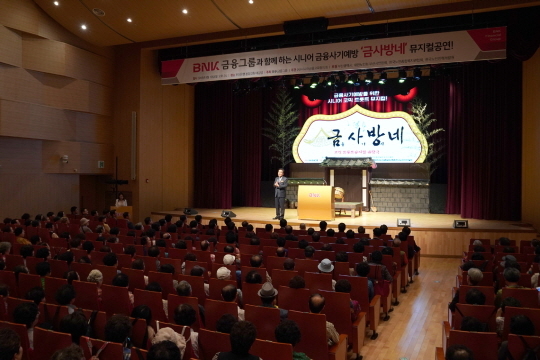 BNK금융그룹은 10일 오후 지역 노년층 금융소비자 450여 명을 부산은행 본점 대강당으로 초대해 금융사기 예방 뮤지컬 '금사방네'를 공연했다고 밝혔다.
