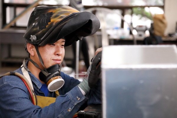 작가는 철, 알루미늄, 구리 등 금속재료들을 사용해 다양한 기법으로 작품을 보여준다. 현대인들의 일상과 전형적인 모습을 사각형의 프레임으로 단순화해 표현하고 있다.
