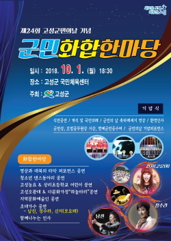 경남 고성군은 민선 7기 힘찬 도약을 다짐하는 제24회 군민의 날 기념행사가 오는 10월 1일 고성군 국민체육센터에서 개최한다.