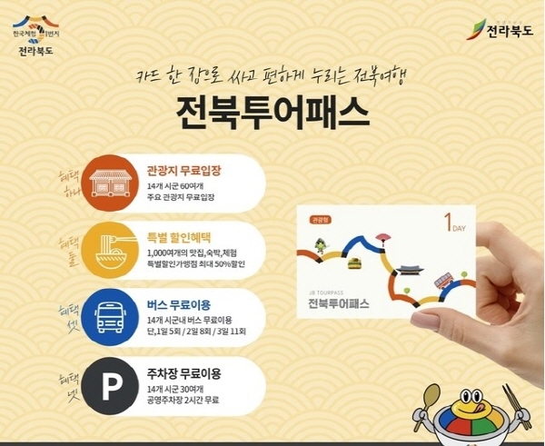 이에 따라 전북투어패스 카드를 이용하면 시티투어버스의 경우 기존에 지불하던 탑승료가 없으며, 내장사 문화재 관람도 무료로 입장할 수 있다. 뿐만 아니라 국민여가 캠핑장, 내장산 케이블카 이용료 역시 할인 혜택을 받을 수 있다.