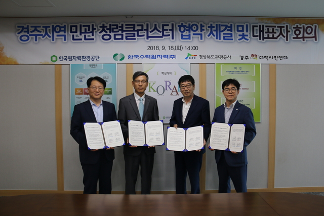 한국원자력환경공단은 18일 본사에서 한국수력원자력, 경북도관광공사, 경주핵대책시민연대 등 4개 기관단체 감사 책임자들이 참석한 가운데 ‘경주지역 민관 청렴클러스터’ 협약을 체결하고, 반부패·청렴문화 확산과 청렴도 제고에 협력키로 했다.