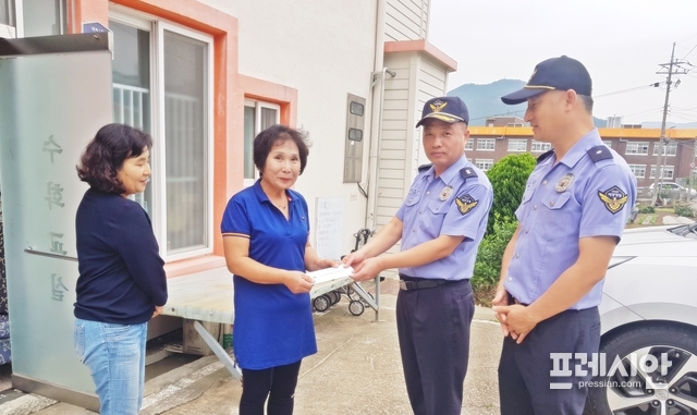여수해경은 19일 오전 여수시 여서동의 한 장애인 거주 시설을 찾아 장애로 어려움 겪고 있는 이웃과 현직 경찰관 중 병마와 싸우고 있는 장기와 병자에게 전 직원이 매달 모금한 위문금을 전달하고 따뜻한 명절이 되기를 기원했다.