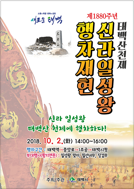‘신라 일성왕 천제 행차 재현’ 행사는 삼국사기 신라본기(新羅本紀)에 ‘일성왕이 친히 북순해 태백산에서 제를 지냈다’는 기록을 토대로 태백시가 육성하고 있는 시의 대표 문화콘텐츠다.