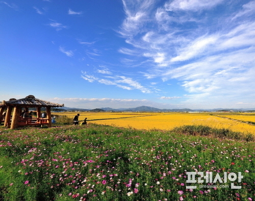 이를지나 낙조대~용산배수장까지는 가을 정취가 가득한 코스모스 길이다. 주남 수문에서 주천강을 따라 걸으면 문화재자료 제225호 주남돌다리가 나온다.
