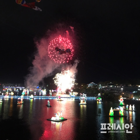 대한민국 글로벌축제인 2018 진주 남강 유등축제는 1일 남강 둔치 특설무대에서 ‘초혼점등식’을 시작으로 일제히 불을 밝혀 진주 남강을 환상적인 빛으로 수놓았다.