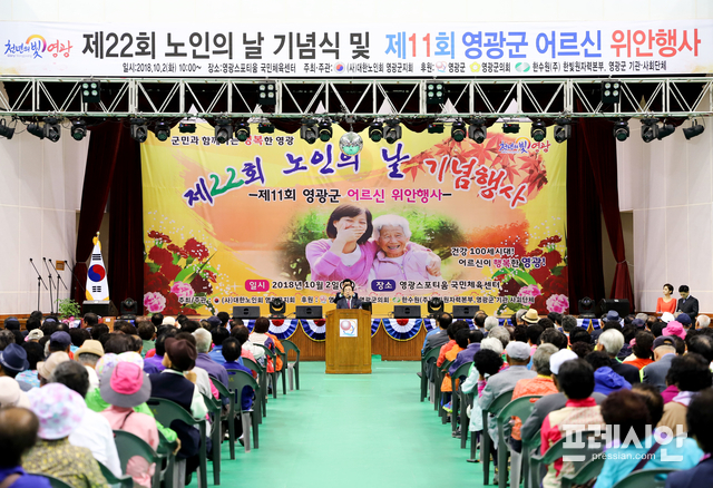 이날 행사는 김준성 영광군수를 비롯한 영광군의회 의원, 기관사회단체장 및 어르신 3천여 명이 참석한 가운데 1부 기념식과 2부 축하공연으로 나누어 진행되었다.