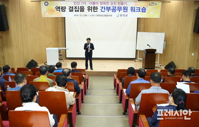 강진군은 지난 2일부터 3일까지 이틀간 전남교통연수원에서 5급 이상 간부공무원 40여 명을 대상으로 민선 7기 더불어 행복한 강진 만들기를 위한 역량 결집 워크숍을 개최했다고 전했다.