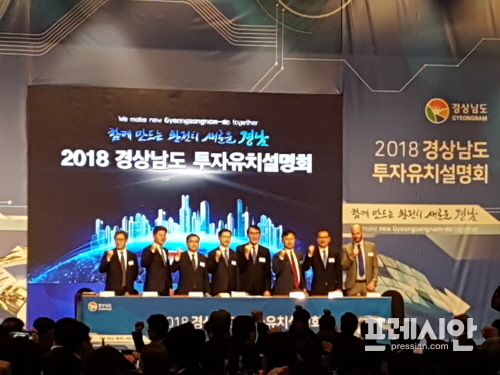 이날 경상남도·고성군과 경남중공업(주)은 투자협약을 체결하고 2022년까지 4300억 원을 투자해 동해면 일원에 선박개조·수리 전문단지를 조성, 2500여 명을 고용하고 지역경제 활성화에 이바지하기로 했다.