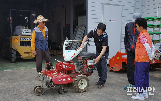 시는 안전한 농기계 사용을 위해 출고에 앞서 기본조작법과 안전수칙 등을 교육하고 있다.