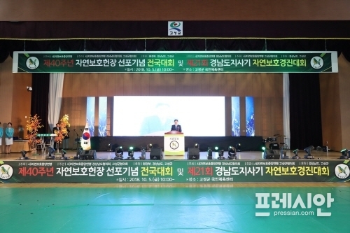 제40주년 자연보호헌장 선포기념식 및 제21회 경상남도지사기 자연보호 경진대회가 5일, 고성군 국민체육센터에서 개최됐다.