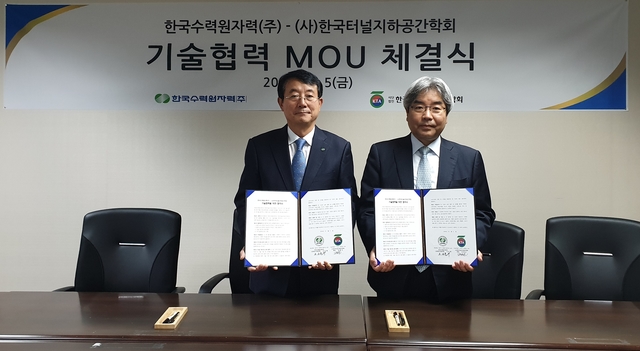 한국수력원자력(이하 한수원)이 5일 서울 서초동 국제전자센터에서 한국터널지하공간학회(회장 유한규, 이하 학회)와 터널 및 지하공간 분야 정보교류와 개발 공동연구를 위한 양해각서(MOU)를 체결했다.