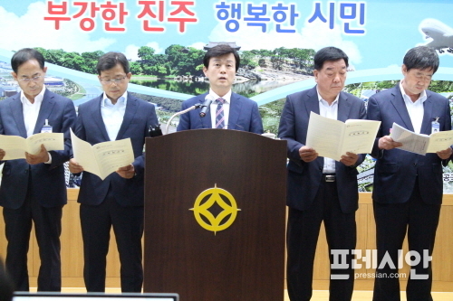 앞으로 민선7기 진주시정은 36만 시민의 모든 역량을 결집해 진주 부흥의 새로운 호기를 잘 살려 희망찬 진주 미래 100년을 여는데 모든 행정력을 집중하겠습니다.