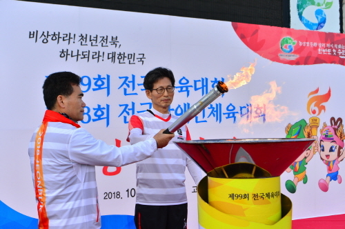 고창군 제1구간 성화봉송 주자로 나선 유기상 군수는 “한반도 첫수도 고창을 찾은 전국(장애인)체전 성화를 환영하며, 6만여 군민들의 뜨거운 염원을 담아 대회의 성공적인 개최를 기원한다”며 “모든 경기가 안전한 가운데 아무 불편 없이 치러질 수 있도록 만전을 기하겠다”고 말했다.