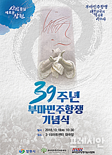 행사에는 부마민주항쟁 기념재단 송기인 이사장을 비롯한 전국민주화단체장, 허성무 창원시장, 김경수 경남도지사, 이찬호 창원시의회 의장 등 주요내빈과 일반시민 1000여 명 참석한 가운데 식전행사, 기념식, 축하공연으로 진행될 예정이다.