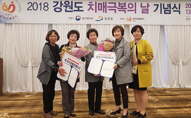 두 사람은 ‘제11회 치매극복의 날 기념’ 유공 우수 치매파트너로 선정되어 이번 시상식에서 강원도광역치매센터장상을 수상했다.