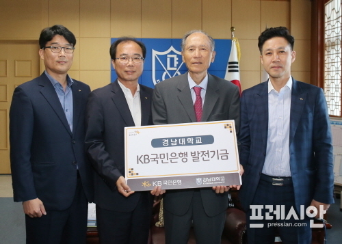 이날 전달식에서 최상국 KB국민은행 경남지역영업그룹 대표는 “경남대는 ‘미래를 열어 가는 지역 감동 대학’이라는 비전 아래 우수한 인재 양성과 대학 발전을 위해 노력해오고 있다”며 “앞으로도 연구와 교육에 매진해 세계가 인정하는 우수한 대학으로 성장해 주길 바란다”고 말했다.