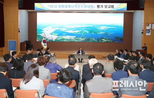 창원시는 15일 시청 시민홀에서 창원세계사격선수권대회 조직위원회, 유관기관, 시 지원부서 등 10개 기관과 부서 50명이 참석한 가운데 사격대회 평가보고회를 가졌다.