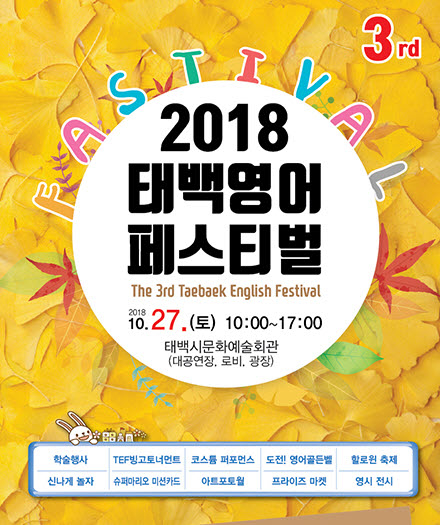 한편, 태백시는 ‘제3회 태백영어페스티벌’과 같은 날 ‘2018 태백평생학습축제’를 함께 개최해 ‘초․중 영어 교육 중심 도시 태백’과 ‘평생학습 도시 태백’을 동시에 알릴 계획이다.