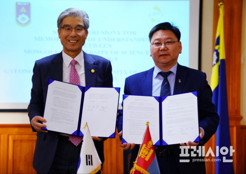 국립 경남과학기술대학교는 17일 몽골 울란바토르에 있는 몽골과학기술대학교를 방문하고 오치르바트 바 타르 총장과 복수학위제 등을 포함한 학술교류 협정서를 체결했다.