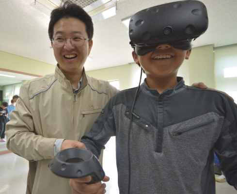 이번 나눔활동은 아이들이 공간정보 기술을 쉽고 재미있게 경험할 수 있도록 가상현실(VR) 체험과 위성항법장치(GPS)를 활용한 보물찾기, 지적측량 체험 등 다양한 프로그램으로 진행됐다.