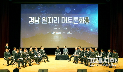경남 일자리 대토론회는 정부와 지방이 함께 일자리 문제에 대한 인식을 공유하고 해법을 마련하고자 일자리위원회와 경남도가 주최하고 한국토지주택공사 주관으로 열렸다.