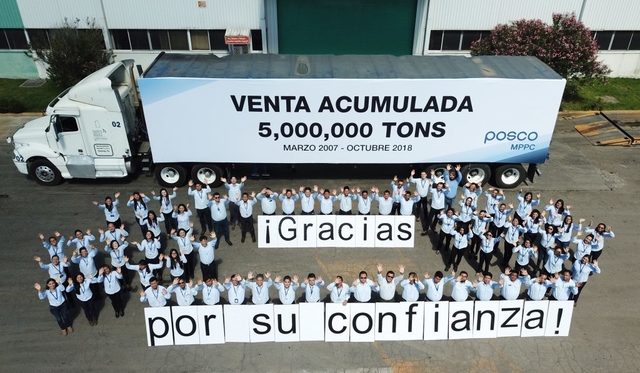 멕시코에 위치한 포스코 가공센터 중 하나인 포스코-MPPC가 누적 판매 500만톤을 달성했다.