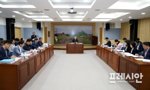 TF팀은 지난 18일 군청 소회의실에서 기획단 실무위원 24명이 참석한 가운데 윤상기 군수 주재로 1차 회의를 갖고 반별 역할과 향후 추진 방향에 대해 심도 있는 논의를 했다.
